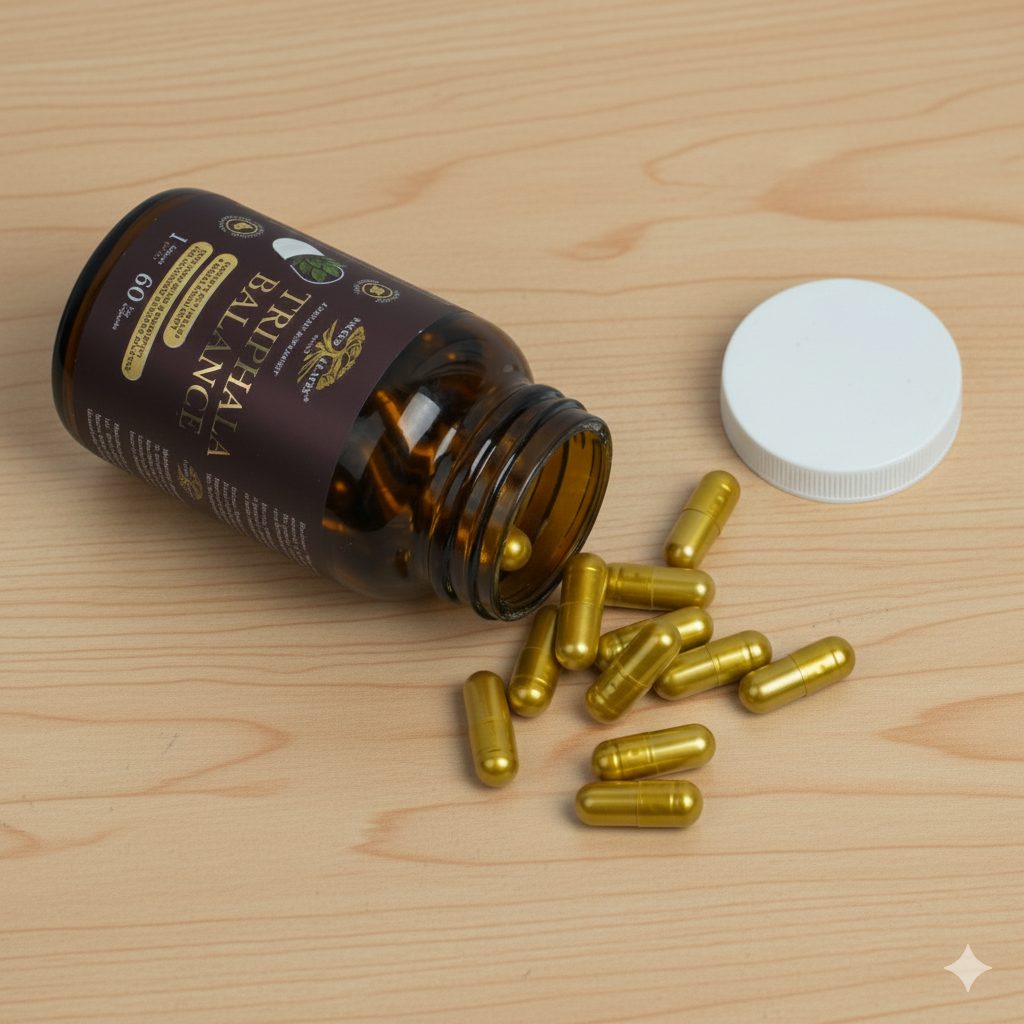 TRIPHALA BALANCE сочетает традиционную аюрведическую формулу с современными пребиотическими и пробиотическими компонентами.